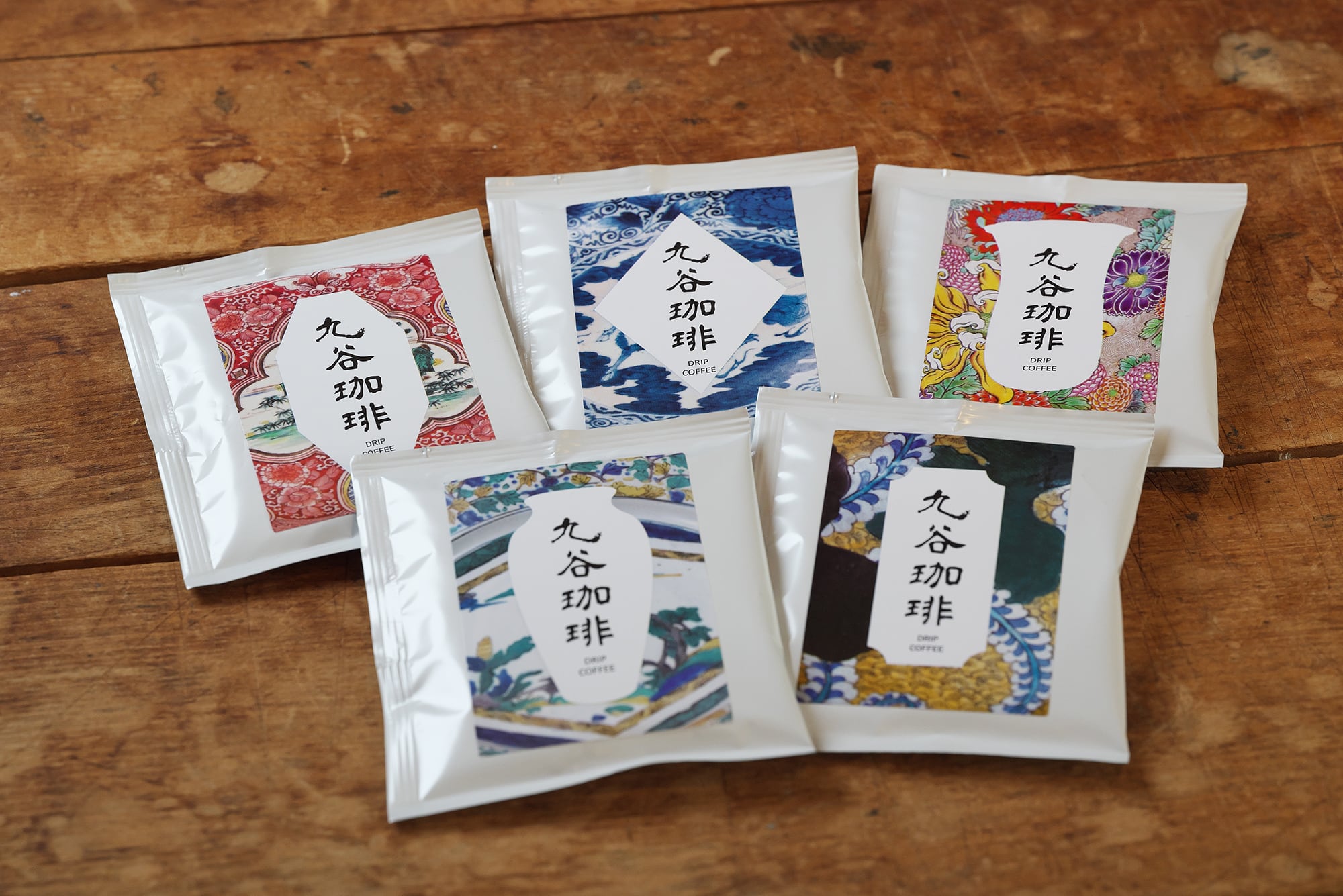 「九谷珈琲」は九谷焼の絵柄をパッケージにデザインしたドリップパックです。濃厚なボディでありながらすっきりとした後味に仕上げた当店オリジナルブレンド。色彩豊かな九谷焼の魅力をコーヒーとともに楽しんでほしい。